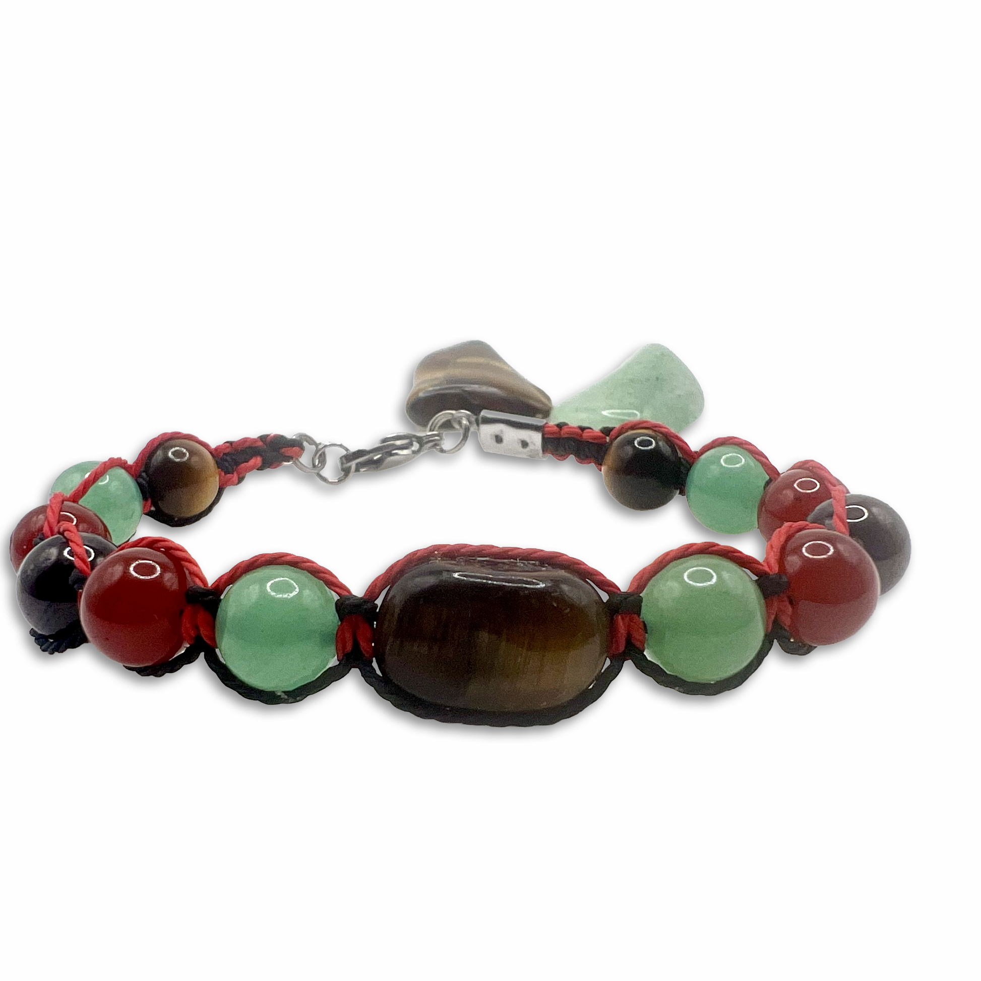 Handmade, Reiki infused bracelet with wrapped crystals: Tiger Eye, Green Aventurine, Carnelian and Garnet that invokes life energy, motivation and creativity, support strength and passion, connects Solar Plexus+ Root+ Heart Chakra. Made with waxed cord and stainless still. Fits 6,5inch wrist size.